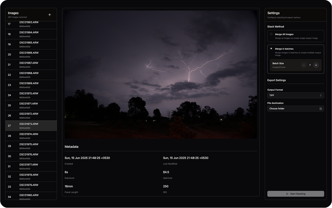 Luma Brush is designed for one purpose: to stack thousands of frames at lightning speed and efficiency.
